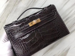 Hermès(爱马仕)Minikelly pochette 亮面鳄鱼 ck88 石墨灰 Graphite 金扣 22cm