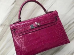 Hermès(爱马仕)Minikelly ll Alligator shiny 亮面鳄鱼 J5 天方夜谭粉紫 银扣 现货