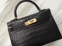 Hermès(爱马仕)Minikelly ll Alligator matt 雾面鳄鱼 ck89 黑色 noir 金扣 现货