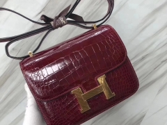 Hermès(爱马仕)Constance空姐包 Alligator shiny 亮面鳄鱼 F5 勃艮第酒红 金扣 18cm