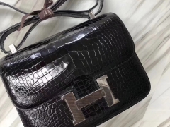 Hermès(爱马仕)Constance24cm Alligator shiny 亮面鳄鱼 ck89 黑色 noir 银扣 现货