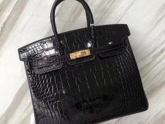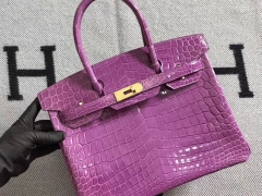 Hermès(爱马仕)Birkin Croocdile shiny 亮面鳄鱼 N5 加仑紫 玫红紫 金扣 30cm 现货
