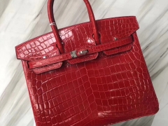 Hermès(爱马仕)Birkin Crocodile shiny 亮面鳄鱼 ck95 法拉利红 Braise 银扣 25cm