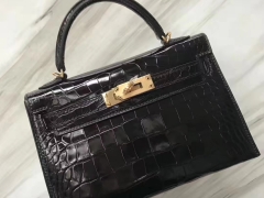 Hermès(爱马仕)Minikelly ll Alligator shiny 亮面鳄鱼 ck89 黑色 noir 金扣 现货
