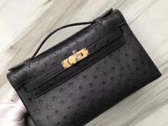 Hermès(爱马仕)Mini Kelly ostrich kk鸵鸟 2Z午夜蓝 顶级工艺 蜡线全手工 金扣 22cm