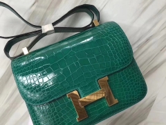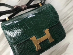 Hermès(爱马仕)Constance24cm Alligator shiny 亮面鳄鱼 6Q 翡翠绿 金扣 现货