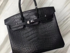 Hermès(爱马仕)Birkin Alligator matt 雾面鳄鱼 ck89 黑色 noir 银扣 25cm