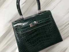 Hermès(爱马仕)Kelly20大耳朵 亮面框框美洲鳄 ck67祖母绿 顶级工艺 蜡线全手工 银扣
