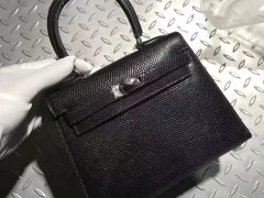 Hermès(爱马仕)Kelly20大耳朵 lizard 进口蜥蜴皮 ck89黑色 顶级工艺 蜡线全手工 银扣