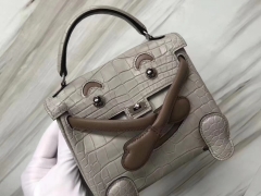 Hermès(爱马仕)mini 迷你凯莉 大象灰 美洲鳄鱼方块 银扣 2代
