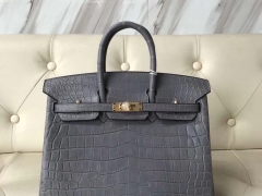 Hermès(爱马仕)Birkin Crocodile matt 雾面鳄鱼 慕斯灰 金扣 25cm