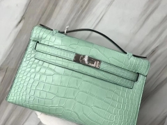 Hermès(爱马仕)Minikelly pochette 雾面鳄鱼 6U 薄荷绿 银扣 手拿包 晚宴包 22cm