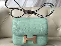 Hermès(爱马仕)Constance Alligator matt 雾面鳄鱼 6U 薄荷绿 玫瑰金 18cm