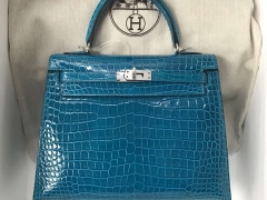 Hermès(爱马仕)Kelly porosus shiny 亮面澳洲 7w 伊兹密尔蓝 Blue izmir 银扣 25cm