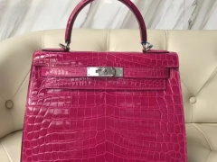 Hermès(爱马仕)Kelly Crocodile shiny 亮面鳄鱼J5 天方夜谭粉紫 银扣 现货 28cm