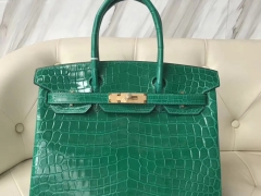 Hermès(爱马仕)Birkin Crocodile shiny 亮面鳄鱼 6Q 翡翠绿 金扣 30cm