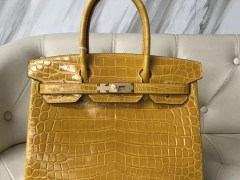 Hermès(爱马仕)Birkin Crocodile shiny 亮面鳄鱼 9D 琥珀黄 Ambre 金扣 30cm