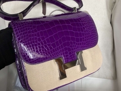 Hermès(爱马仕)Constance Alligator shiny 亮面方块鳄鱼 5L 极度紫 银扣 18cm