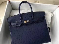 Hermès(爱马仕)Birkin Ostrich kk 鸵鸟 深蓝 金扣 25cm
