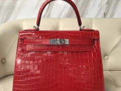 Hermès(爱马仕)Kelly Crocodile shiny 亮面鳄鱼ck95 法拉利红 Braise 银扣 28cm