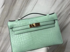 Hermès(爱马仕)Minikelly pochette 雾面鳄鱼 6U 薄荷绿 金扣 手拿包 晚宴包 22cm