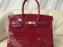 Hermès(爱马仕)Birkin Crocodile shiny 亮面鳄鱼 ck55 爱马仕红 Rouge H 金扣 30cm