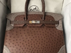 Hermès(爱马仕)Ghillies Birkin Ostrich 鸵鸟三拼 金扣 35cm