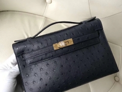 Hermès(爱马仕)Minikelly pochette Ostrich Kk 鸵鸟纹 深海蓝 2Z 金扣 现货