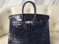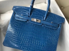 Hermès(爱马仕)Birkin shiny nilo crocodile 亮面尼罗鳄 宝石蓝 蜡线全手工 银扣 25cm