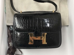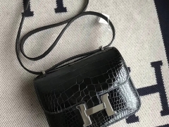 Hermès(爱马仕)Constance 亮面框框鳄鱼 ck89黑色 顶级工艺 蜡线全手工 银扣 19cm