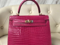 Hermès(爱马仕)Kelly Porosus shiny亮面澳洲湾鳄 J5 天方夜谭粉紫 金扣 25cm