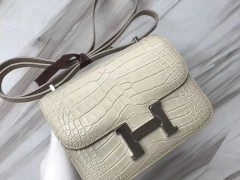 Hermès(爱马仕)Costance Crocodile matt 雾面鳄鱼 8L 奶油白 Beton 银扣 18cm