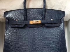 Hermès(爱马仕)Birkin lizard进口蜥蜴皮 ck73宝石蓝 顶级工艺 蜡线全手工 金扣 25cm