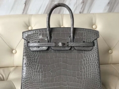 Hermès(爱马仕)Birkin Crocodile shiny 亮面鳄鱼 8U 冰川灰 银扣 顶级手缝 25cm
