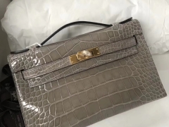 Hermès(爱马仕)Kelly cut 亮面澳洲湾鳄 ck81 斑鸠灰 Gris T 金扣 手拿包 晚宴包 31cm