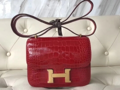 Hermès(爱马仕)Constance18cm Alligator shiny 亮面鳄鱼 ck95 法拉利红 Graphite 金扣