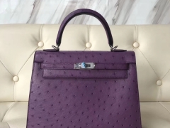 Hermès(爱马仕)Kelly25cm ostrich kk鸵鸟 P9海葵紫 顶级工艺 蜡线全手工 银扣 接受定制