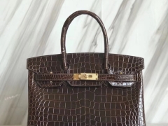 Hermès(爱马仕)Birkin30cm Porosus shiny 亮面澳洲湾鳄 咖啡色 巧克力色 金扣