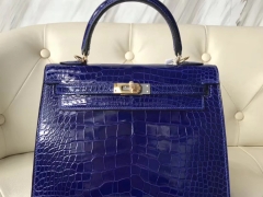 Hermès(爱马仕)Kelly25cm Crocodile shiny 亮面鳄鱼 7T 电光蓝 Blue eletric 金扣