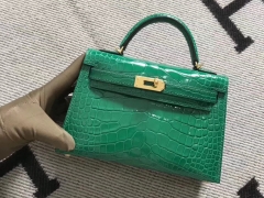 Hermès(爱马仕)亮面美洲鳄鱼 mini 2代 翡翠绿 金扣