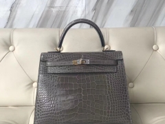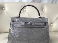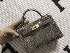 Hermès(爱马仕)Minikelly ll Alligator shiny 亮面鳄鱼 m8 巴黎灰 银扣