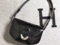 Hermès(爱马仕)Cherche midi 黑色银扣 美洲鳄新款 20cm