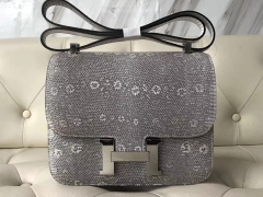 Hermès(爱马仕)Constance24cm lizard 进口亮面蜥蜴皮 01 原色 小喜马拉雅色 银扣
