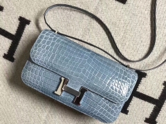 Hermès(爱马仕)Constance 空姐包 极品亮面鳄鱼 小康elan 牛仔蓝 26cm