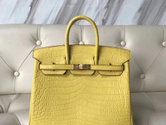 Hermès(爱马仕)Birkin铂金包 雾面鳄鱼 9R 柠檬黄 金扣 小可爱 25cm