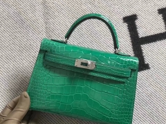 Hermès(爱马仕)亮面美洲鳄鱼 mini 2代 翡翠绿 银扣