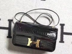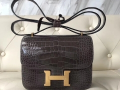 Hermès(爱马仕)Constance18cm Alligator shiny 亮面鳄鱼 ck88 石墨灰 Graphite 金扣