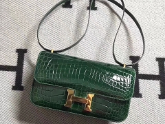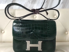 Hermès(爱马仕)Constance18cm Alligator shiny 亮面鳄鱼 ck67 祖母绿 Graphite 银扣