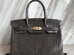 Hermès(爱马仕)Birkin30cm Porosus shiny 亮面澳洲湾鳄 ck88 石墨灰 graphite 金扣