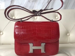 Hermès(爱马仕)Constance18cm Alligator shiny 亮面鳄鱼 ck95 法拉利红 Graphite 银扣